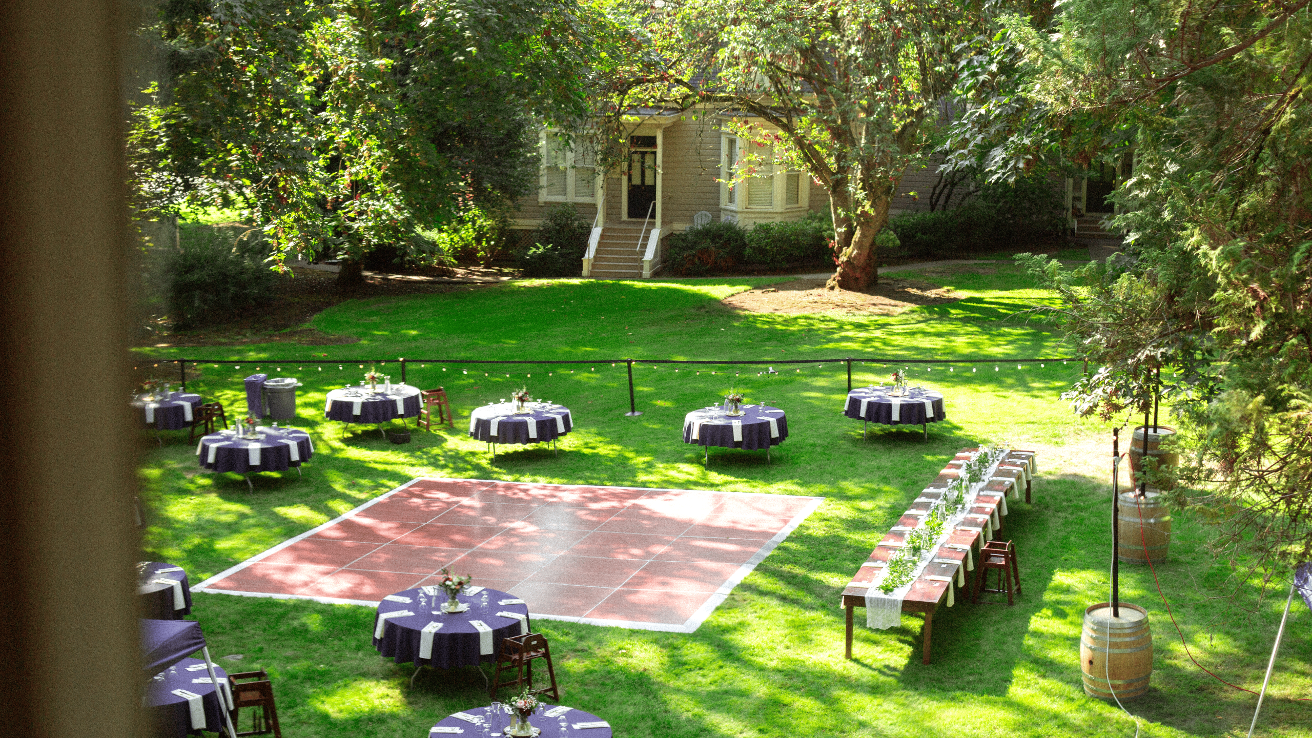 For those seeking outdoor elegance, the front lawn is ideal for wedding ceremonies, while the West Lawn offers a spacious setting for large outdoor receptions. The venue also features a charming, fully covered wraparound porch, perfect for guests to enjoy the scenic view of Fort Vancouver National Park. Additionally, The Marshall House includes a wedding suite, ensuring the couple has a private space to prepare for their big day.